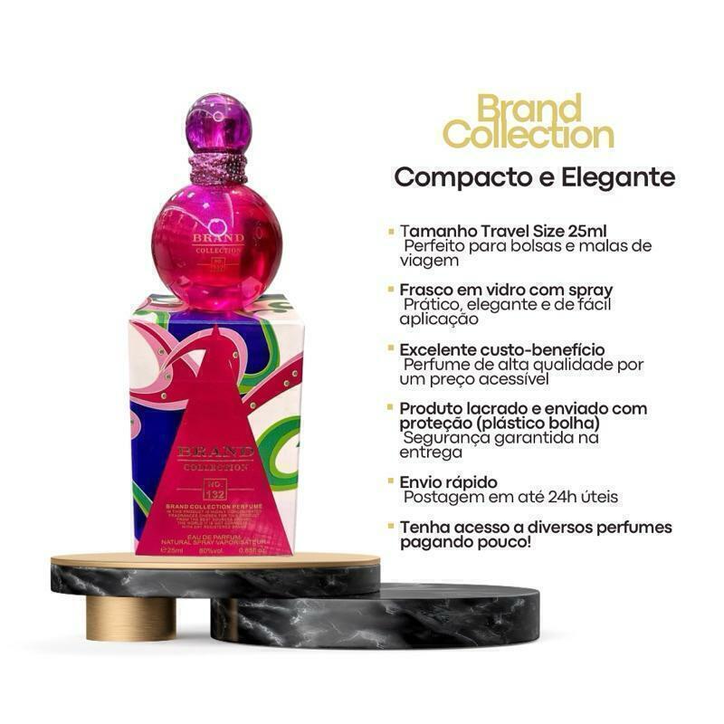 Perfume Feminino Brand Collection 132 Eau de Parfum Importado OriginalUm perfume feminino descolado. Com frutas, perfeito para a mulher romântica, mas que adora provocar.Foi especialmente desenvolvido para a mulher sedutora, mas ao mesmo doce e romântica. Permite que você mostre sua personalidade por completo, com esta fragrância mágica e irresistível, possui uma fragrância de um majestoso mix de deliciosas Lichias Vermelhas, Marmelos Dourados e exóticos Kiwis. Seu desenho representa a busca do amor eterno.Pirâmide olfativa:• Topo: Kiwi, Lichia Vermelha e Marmelo.• Corpo: Chocolate Branco, Cupcake, Orquídea e Jasmim.• Fundo: Almíscar, Raíz de Orris ou Lírio Florentino e Notas Amadeiradas.Ocasião:Esta delicada fragrância combina com momentos festivos, como em baladas e para a noite. Seduz e encanta quem passa por perto! Ideal para ser usado em qualquer clima, seja de dia ou de noite. Pele perfumada com diversão e festividade.Perfumes Brand Collection – Qualidade, praticidade e custo-benefício!️ Tamanho ideal para levar com você:Todos os perfumes da linha Brand Collection são desenvolvidos em formato exclusivo de 25ml, no estilo Travel Size (tamanho para viagem).Compactos e práticos, são perfeitos para carregar em bolsas, nécessaires ou malas de viagem, sem ocupar espaço.Possuem borrifador spray que facilita a aplicação e garante melhor aproveitamento da fragrância.Excelente custo-benefício:Ideal para quem deseja ter acesso a uma grande variedade de perfumes sem precisar fazer um alto investimento.Com o valor de um perfume importado tradicional, você pode montar sua coleção com fragrâncias inspiradas nos maiores sucessos da perfumaria mundial.Dicas para potencializar sua fragrância:Sabia que o perfume dura mais quando aplicado nos pontos de maior circulação sanguínea? Veja onde aplicar:️ Atrás dos joelhos️ Dobras dos braços️ NucaEssas áreas naturalmente exalam mais calor, o que ajuda a espalhar o aroma ao longo do dia.Como fazer o perfume durar ainda mais?Hidrate a pele antes da aplicação.Pele hidratada absorve melhor a fragrância e retém o aroma por mais tempo.Dica infalível: Use o hidratante corporal da mesma linha do perfume (ou com aroma neutro) para intensificar e harmonizar o cheiro.Confira nossa linha de Hidratantes Corporais e prolongue sua experiência olfativa!Envio rápido e atendimento dedicado:Todos os pedidos são postados em até 24 horas úteis, garantindo agilidade e cuidado com seu pedido.Produtos enviados lacrados e bem embalados em plástico bolha para que cheguem até você com total segurança.Não encontrou seu perfume preferido?Fale com a gente pelo chat!Encomende a fragrância que você deseja e nós buscamos para você.Perfume Feminino Brand Collection (Perfurme Miniatura) inspirados nos seus sonhos, com o tamanho e preço que cabem na sua rotina.